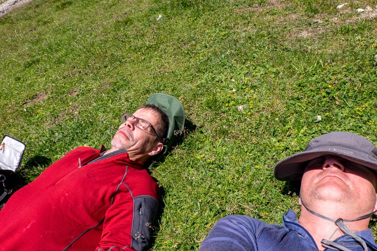 Nachdem wir hier wieder Handynetz hatten, wurde es Zeit, einen wichtigen Anruf zu tätigen. Uli, unser Kumpel, der auf die Idee kam, die Alpenüberquerung von München nach Venedig zu machen, sollte hier zu uns stoßen. Die letzten Jahre war er immer unabhängig von uns gelaufen und hatte am Jahr zuvor am Grödnerjoch den Heimweg angetreten. Nun sollte er wieder zu uns stoßen und den Rest der diesjährigen Etappe mit uns gemeinsam gehen. Wobei Oli und ich von Belluno aus wieder nach Hause mussten, Uli hingegen bis Venedig durchlaufen wollte.
