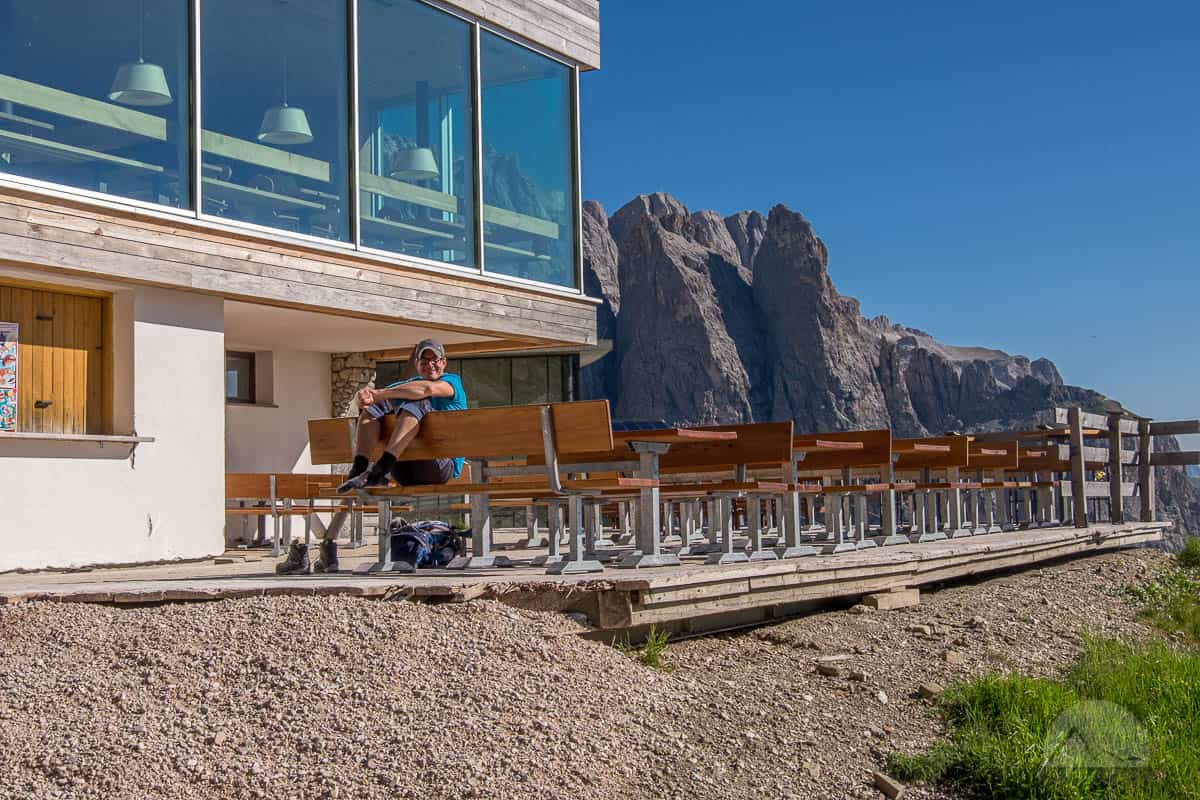 Pünktlich zur Mittagszeit erreichten wir die Puezhütte und machten erst mal ausgiebig Rast. Sogar ein Mittagsschläfchen in der Sonne war drin. Die Berge um die Hütte gaben mir immer den Eindruck auf dem Mond oder Mars unterwegs zu sein, so unwirklich sahen ihre Gipfel aus. Wenn ihr sie seht, werdet ihr verstehen was ich meine.